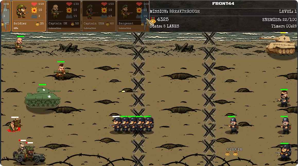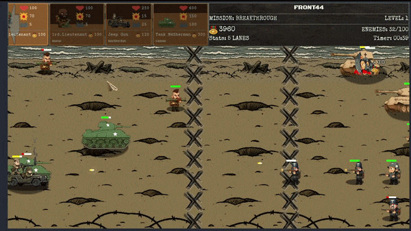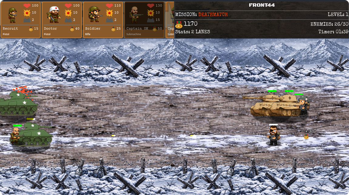 Front44: Resistance is a tactical 2D warfare experience where every decision determines the fate of the battlefield. Built on Godot 4.5, this game challenges you to lead your troops through 20 intense missions with dynamic objectives that will test your strategic mind.